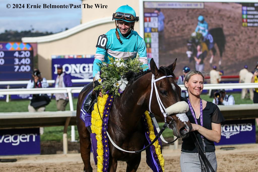 Flavien Prat, the 2024 recipient, won the 2024 Breeders’ Cup Filly & Mare Turf aboard Moira. (Ernie Belmonte/Past The Wire)