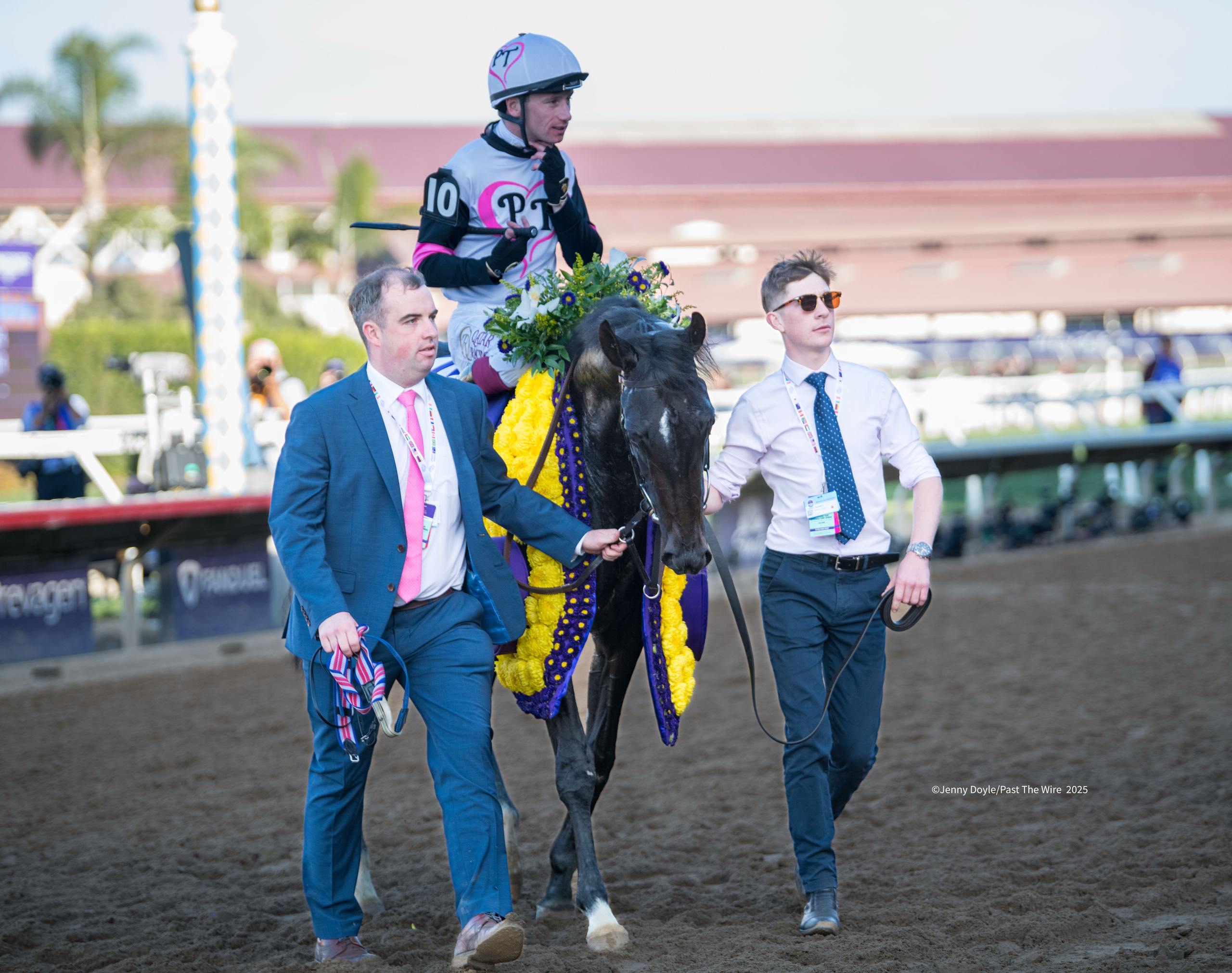 Fourth-place trainer Brendan Walsh (Imaginationthelady) – “Frankie (Dettori) said things were happening just a tick too fast for her. I thought she had a nice trip around there and he gave her every chance. She ran well, finishing fourth, so no complaints. I think she will be a nice 3-year-old, especially going farther.”