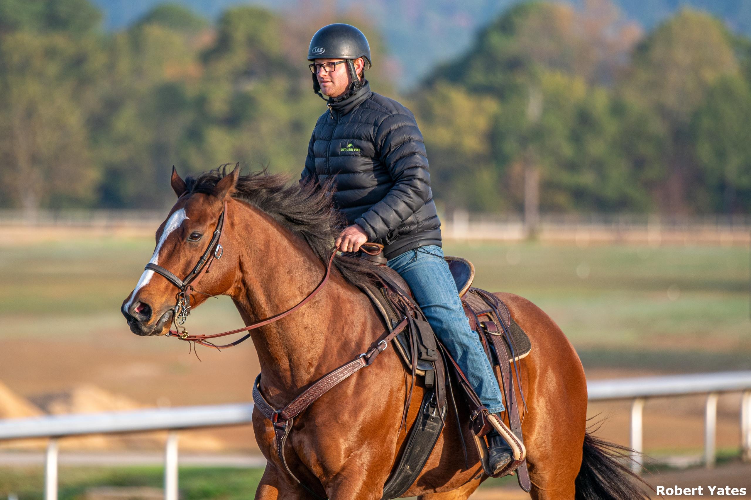 Monday morning, while Bill Mott was putting Sovereignty and Scylla through their final Breeders’ Cup workouts at Del Mar and dealing with a steady flow of print and video journalists, Riley Mott was doing his thing with Argos in relative obscurity.
