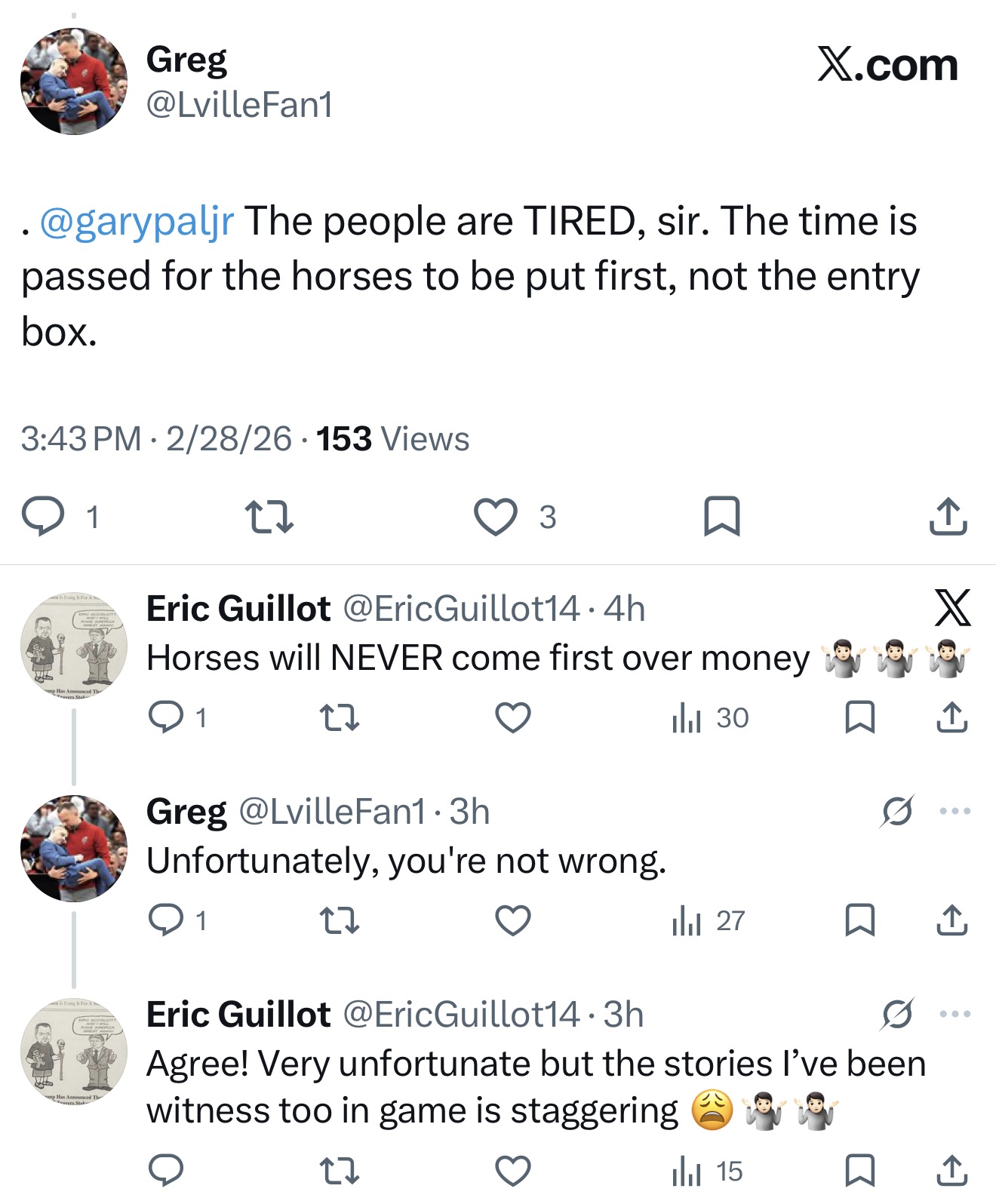 That asymmetry fuels distrust. If racing thrives, these institutions remain powerful and well-funded. If racing contracts dramatically, they remain among the most financially insulated entities in the ecosystem. That is not proof of malice. It is proof of insulation. One could certainly argue it is good business. More than one thing can be true at the same time, but we are talking about the pillars and leaders of an industry in trouble and horses who need help. That can’t be lost in business practices or a board room.