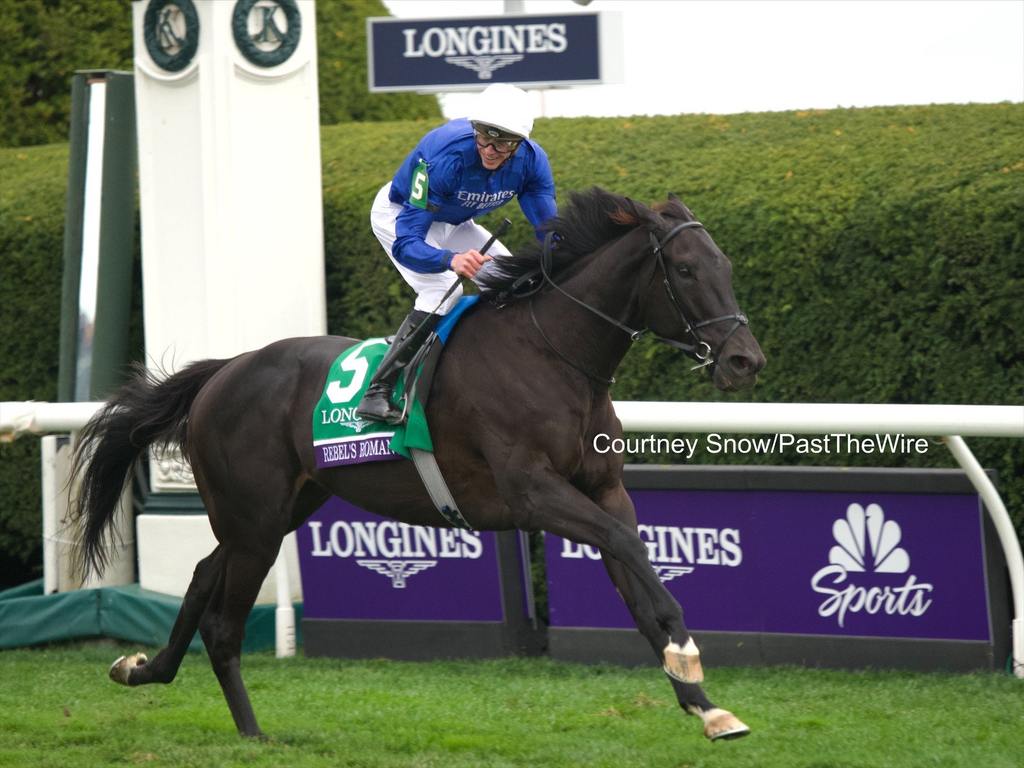 Rebel’s Romance scoring his first Breeders’ Cup Turf in 2022. (Courtney Snow/Past The Wire)