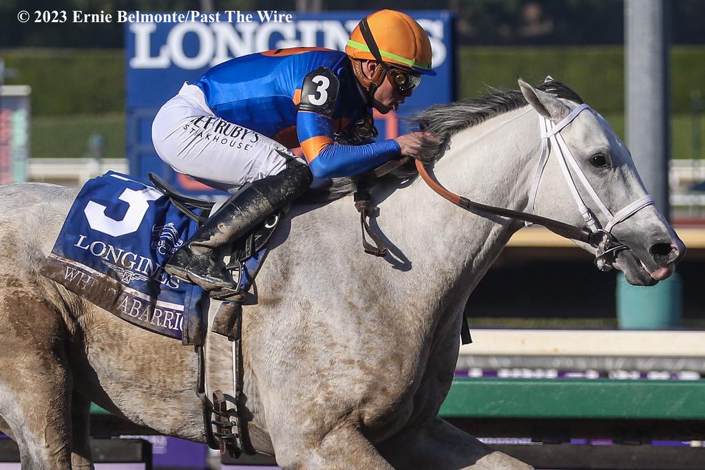 White Abarrio, the horse who was scratched in the post parade five months ago by a veterinarian who looked at his characteristic gait and decided it was suddenly disqualifying, is lining up against the best older horses in the country this weekend. The horse the CHRB listed as unsound passed their own clearance breeze and came off the vet’s list immediately. The horse who was too lame to run in a $1 million Dirt Mile is now 7-2 on the morning line against the Horse of the Year.
