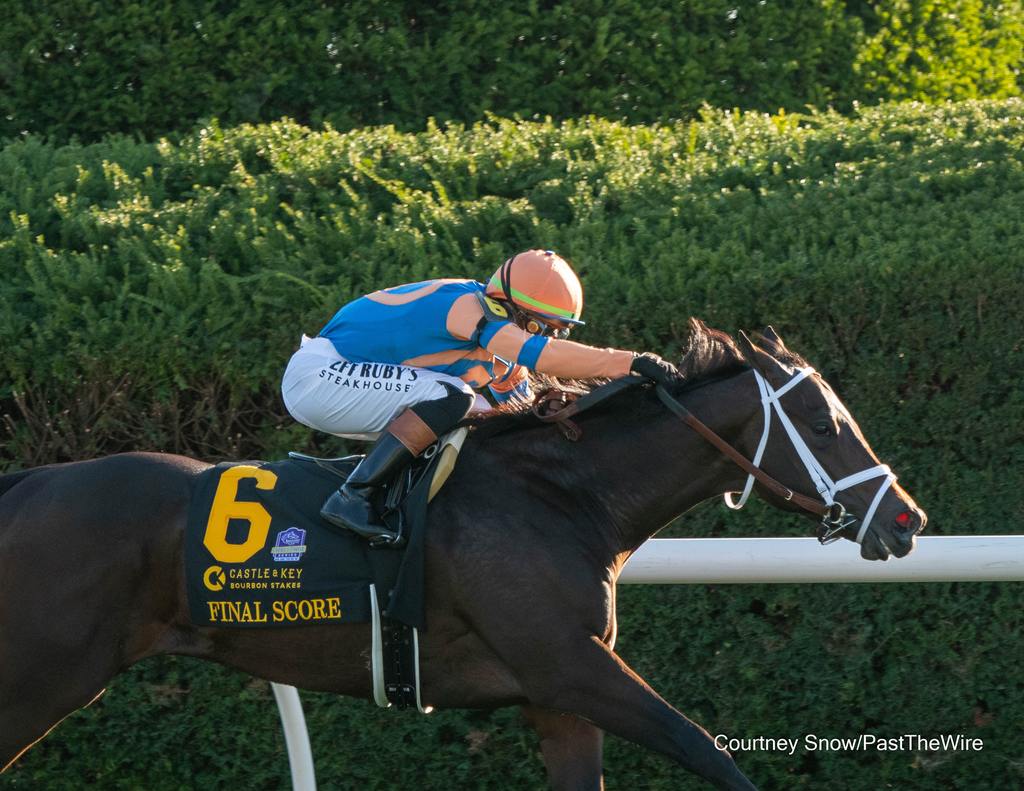 LEXINGTON, Ky. – Final Score, who dueled through a pressured pace, held off all pursuers in the stretch to post a 1¼-length victory in the Castle & Key Bourbon (G2) for 2-year-olds and earned a fees-paid berth to the Breeders’ Cup Juvenile Turf (G1) on Oct. 31 at Del Mar.