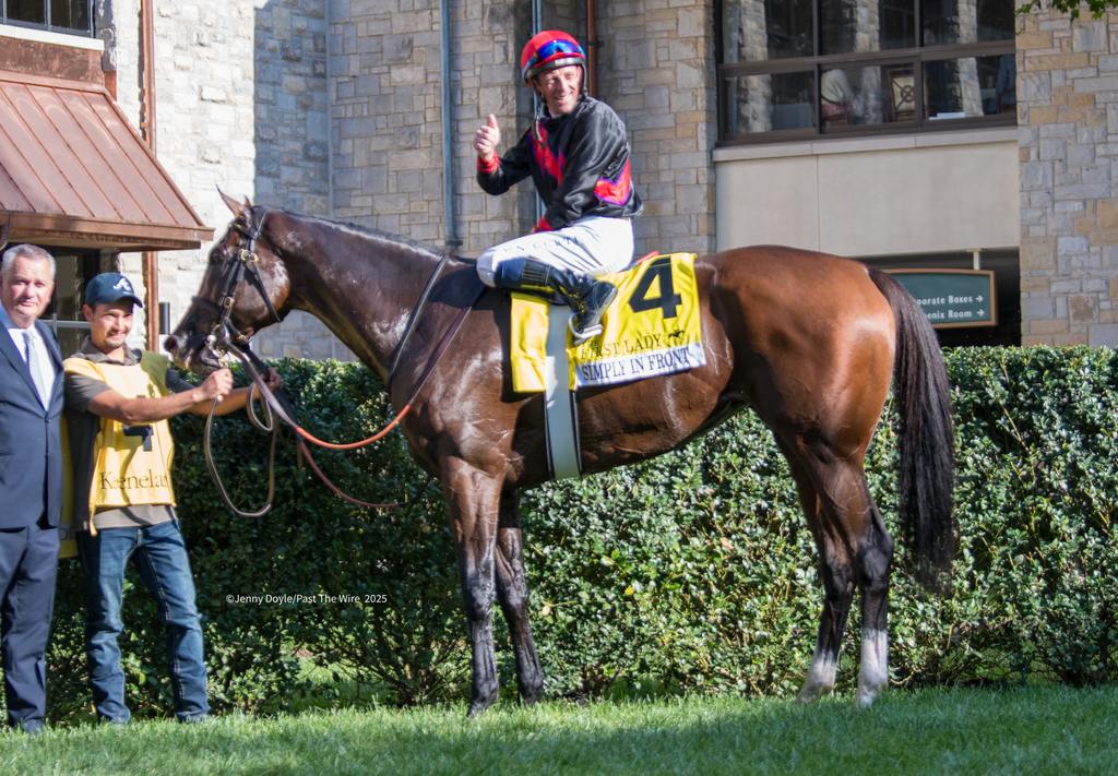 Colebrook Farms’ Simply in Front exited her neck victory in Saturday’s $800,000 First Lady (G1) in good order, and the logical question for trainer Eddie Kenneally is what’s next.
