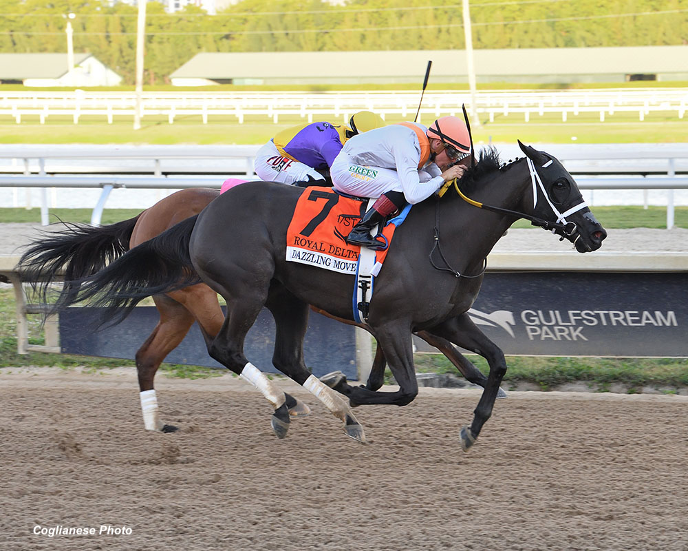 Supplemented is Not This Time daughter Dazzling Move making her move in this year’s G3 Royal Delta S. (Coglianese Photo)