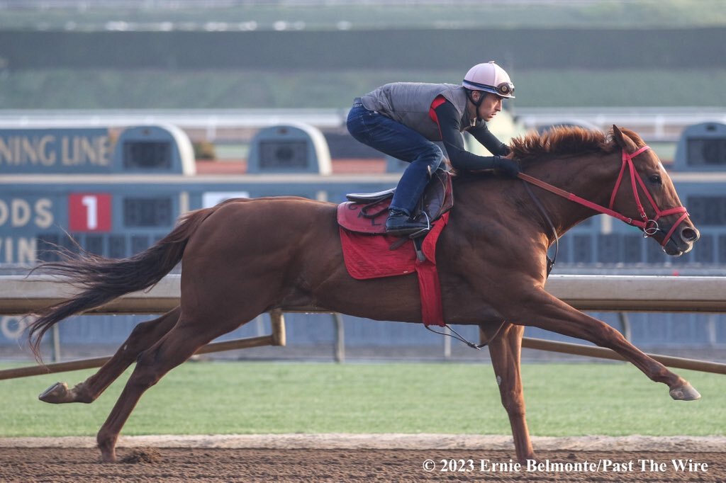 Working three furlongs for Hall of Fame trainer Richard Mandella was an unnamed filly by Bolt d’Oro out of the Hall of Fame racemare Beholder. She went three furlongs for the first time, completing the move in 36.00 seconds. She previously had a trio of two-furlong works starting May 13.