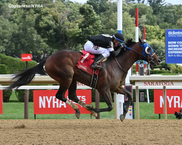 Universe winning on debut August 30 at Saratoga. (Coglianese/NYRA)