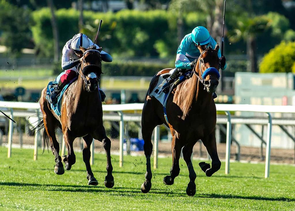 Greenwich Village, the 8-5 favorite ridden by Juan Hernandez, got up in the final jump to nail pacesetter Medici (7-1) by a nose to earn his second consecutive stakes victory since being switched to the grass. Four weeks ago, Greenwich Village rallied from last to win the about 6 ½-furlong Baffle Stakes by a neck on Santa Anita’s hillside turf course.