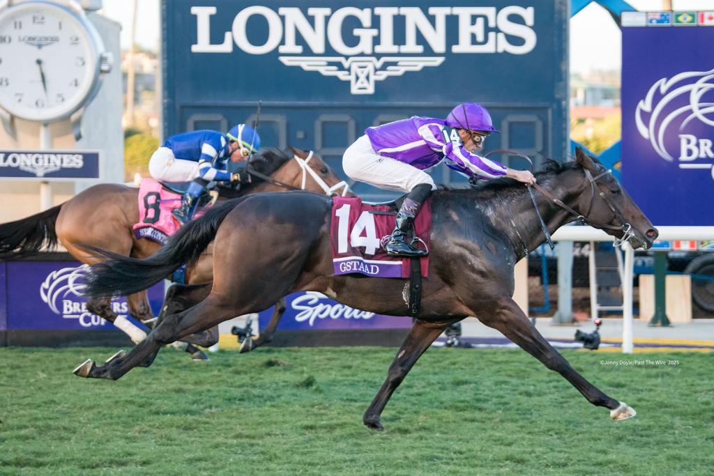 DEL MAR, Calif. – Derrick Smith, Mrs. John Magnier and Michael Tabor’s Gstaad (GB) ($4.40) rallied from off the pace to post a three-quarter-length victory over longshot Stark Contrast to win the 18th running of the $1 million Breeders’ Cup Juvenile Turf (G1) at Del Mar Friday afternoon for 2-year-olds to wrap up Future Stars Friday at the 42nd World Championships.