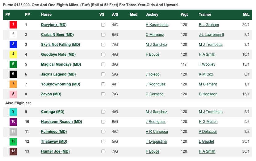The John Deere Maryland Million Turf drew a field of eight with five others residing on the Also Eligible list.