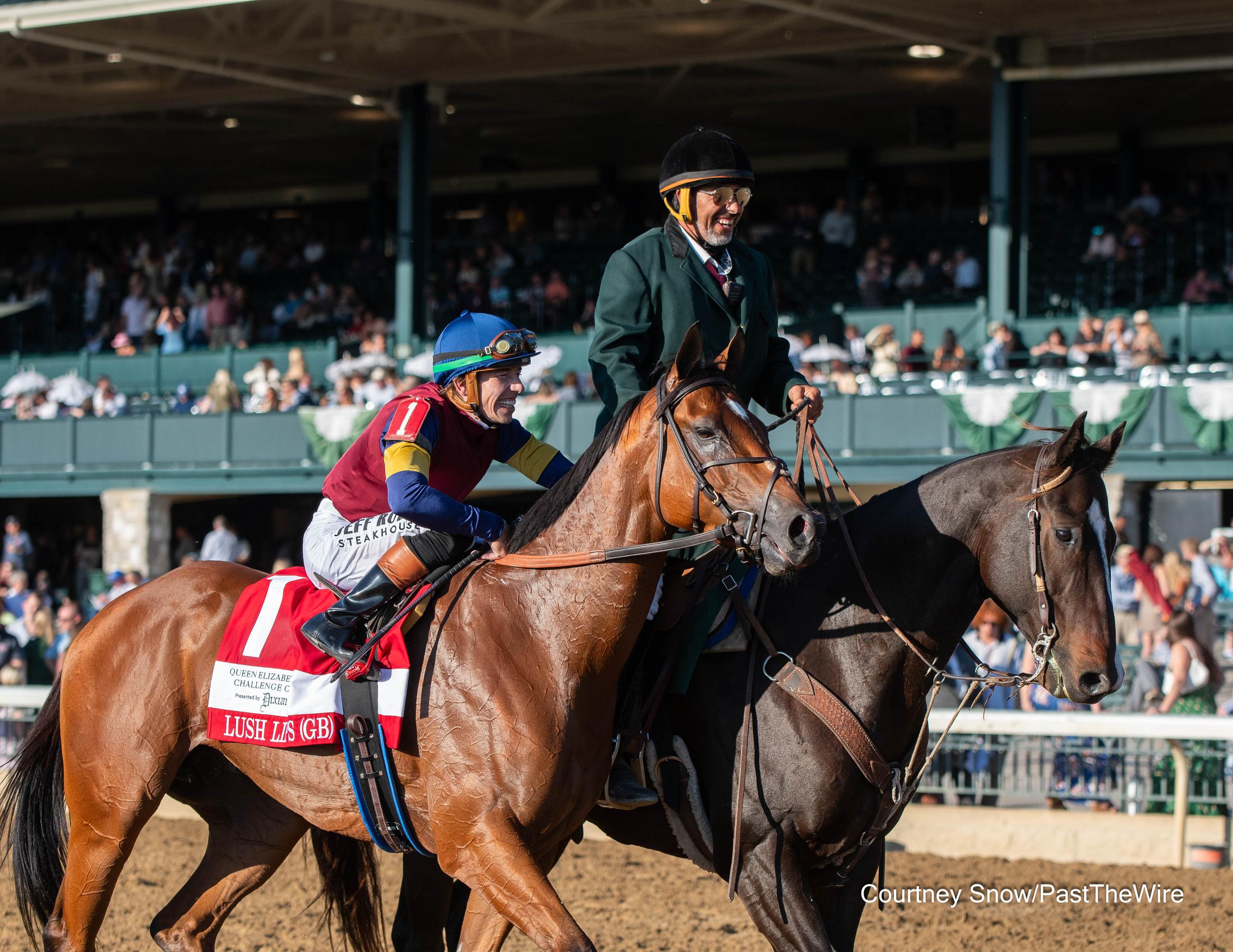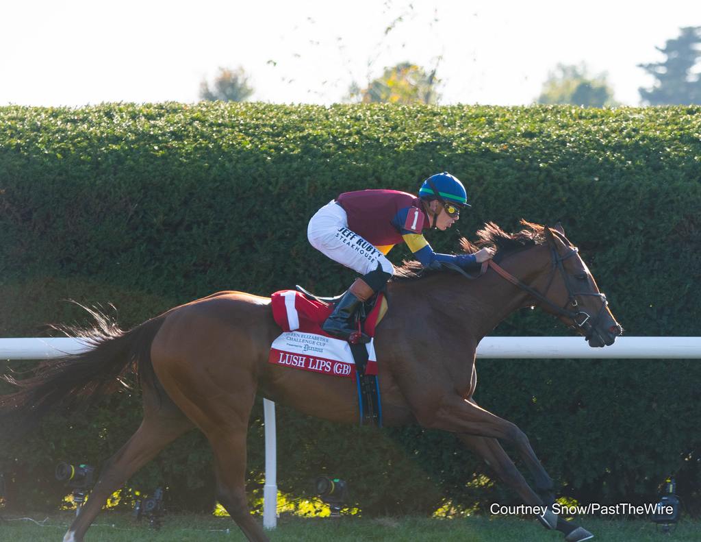 LEXINGTON, Ky. – Medallion Racing, Parkland Thoroughbreds, Hoffman Thoroughbreds, Mrs. Paul Shanahan and Mrs. M.V. Magnier’s Lush Lips (GB) powered past pace-setting Opulent Restraint (IRE) nearing the eighth pole en route to a 1¼-length victory in the 42nd running of the $800,000 Queen Elizabeth II Challenge Cup (G1) Presented by Dixiana for 3-year-old fillies Saturday afternoon.