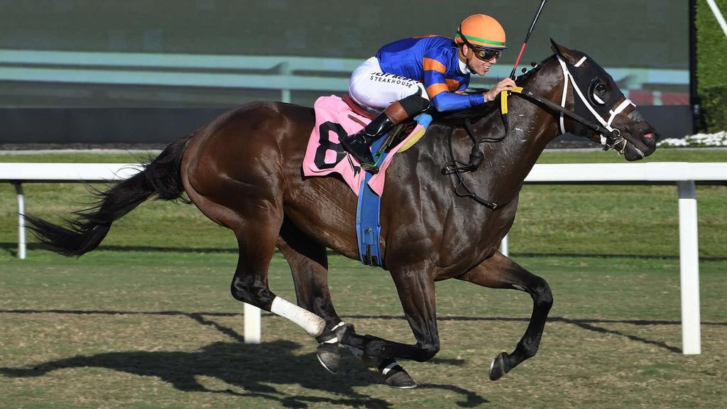 HALLANDALE BEACH, FL – Grade 1 stakes-placed on dirt, Neoequos scored an impressive turf debut Saturday at Gulfstream Park, where the 4-year-old son of Neolithic registered an impressive two-length victory in the $75,000 Sunshine Turf.