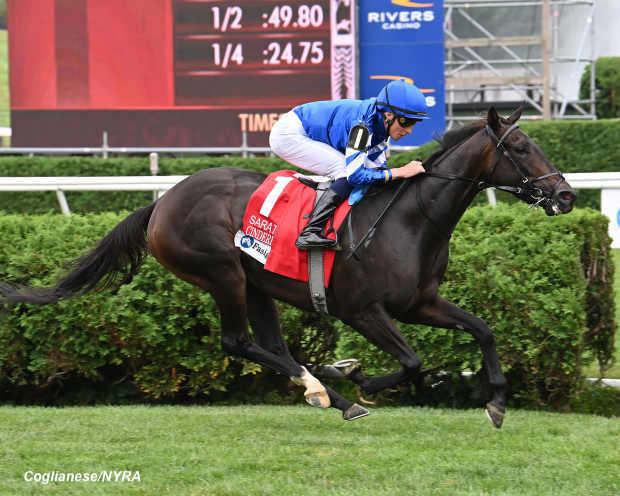 Cinderella’s Dream winning the 2024 Saratoga Oaks. (Coglianese/NYRA)