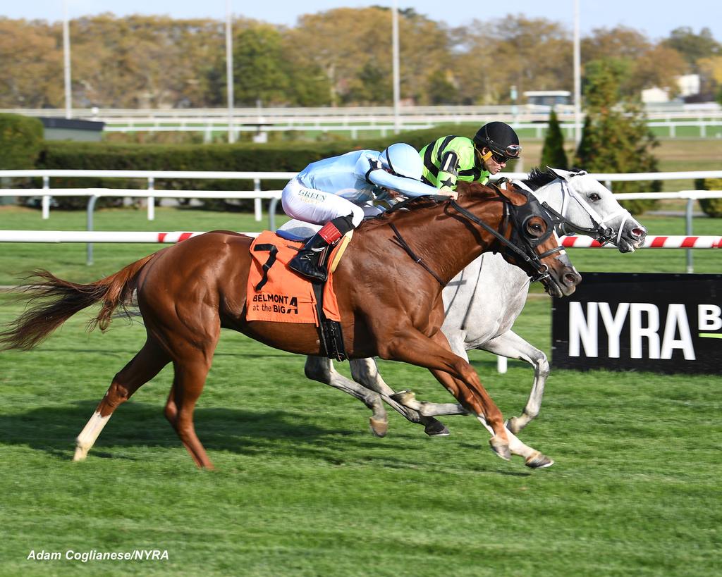 OZONE PARK, N.Y. – Case Chambers, Paradise Farms Corp. and David Staudacher’s graded stakes-placed New York-bred Out On Bail returned to the winner’s circle with a determined nose victory over Cyclonite in Sunday’s $150,000 Carle Place, a six-furlong outer turf sprint for sophomores, at Belmont at the Big A.