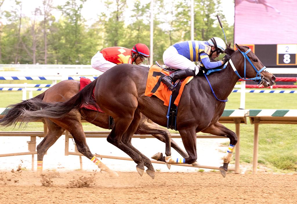 Princess Kokachin winning the Primonetta in April at Pimlico Race Course. (Jim McCue/MC)