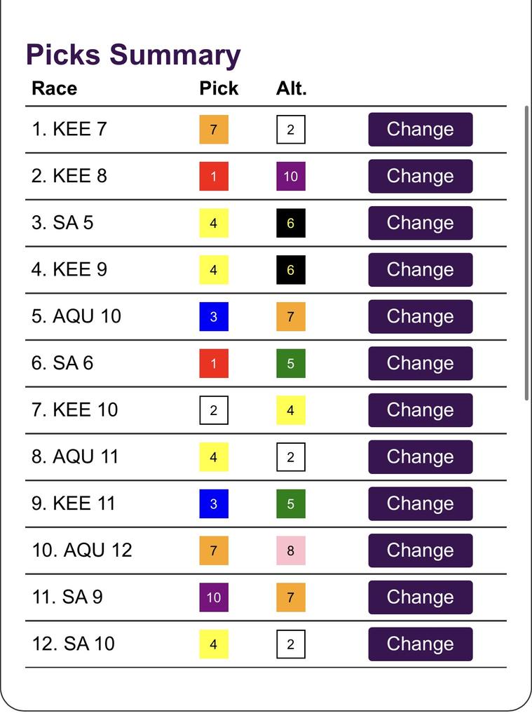 Race 9 Kee – 4 Ragtime, this horse soured a little but towards the end of the year but still had an incredible year and beautiful debut meet at Saratoga. I just think there’s too much speed signed on here and sitting patiently and then being able to pounce late with her patented thunderous run.