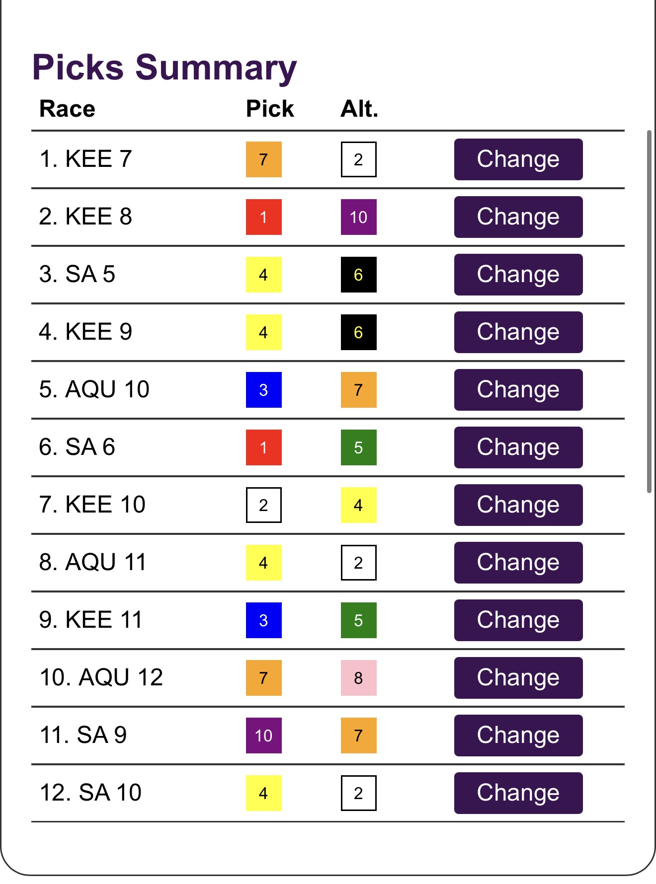 Race 9 Kee – 4 Ragtime, this horse soured a little but towards the end of the year but still had an incredible year and beautiful debut meet at Saratoga. I just think there’s too much speed signed on here and sitting patiently and then being able to pounce late with her patented thunderous run.