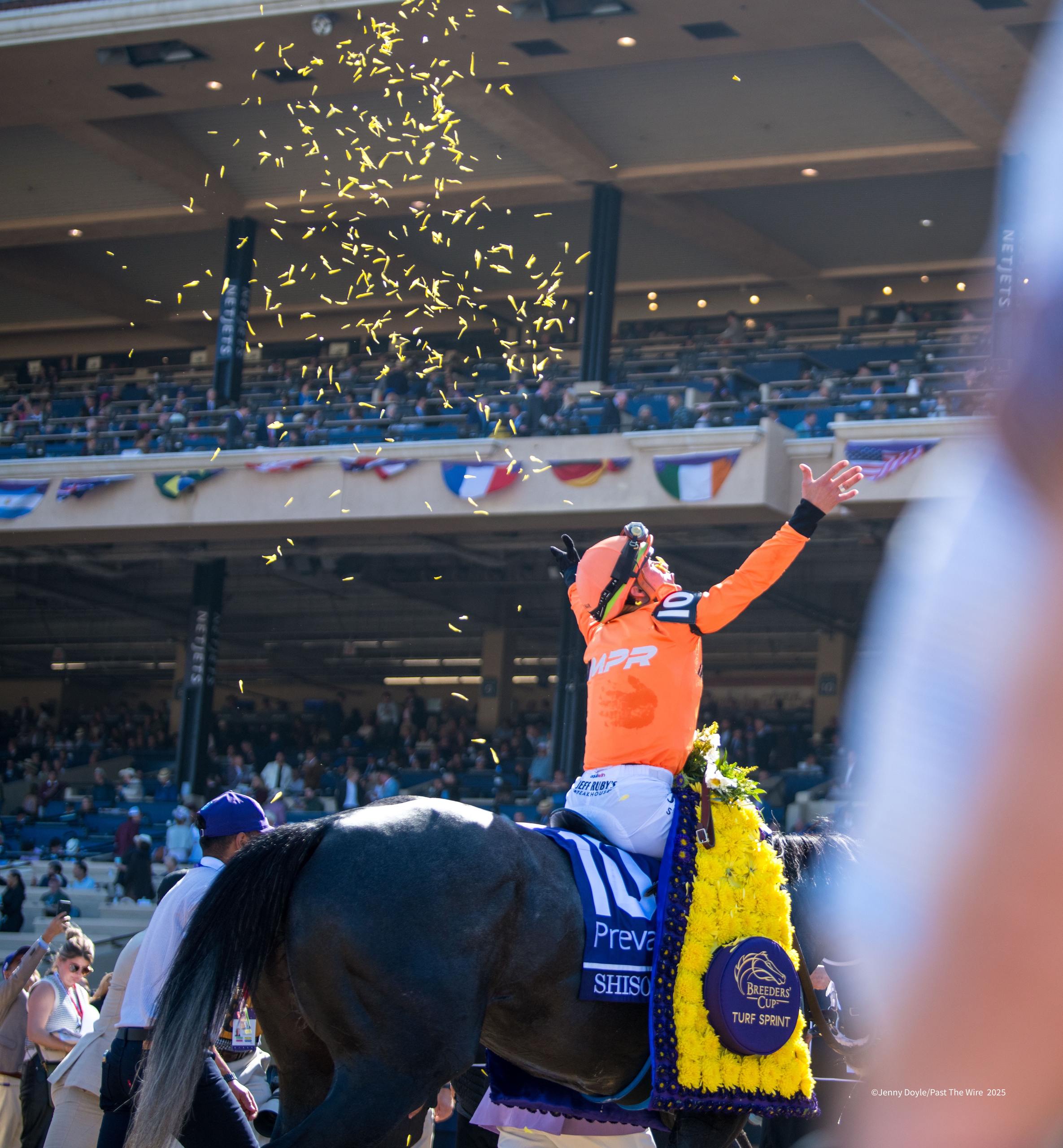 Trained by Jose D’Angelo and ridden by Irad Ortiz Jr., Shisospicy covered the 5 furlongs on a firm turf course in :55.24. It is the first victory in the World Championships for D’Angelo and the 22nd for Ortiz and second in this race.