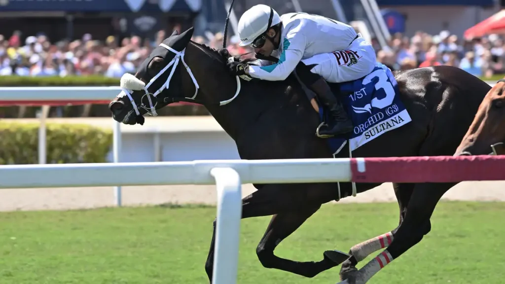 HALLANDALE BEACH, FL – Lou Donato, Theodore Manziaris, Paul Borrelli and Lanni Bloodstock’s Sultana pulled off a late-rallying upset off the shelf in Saturday’s $175,000 Orchis (G3) at Gulfstream Park.