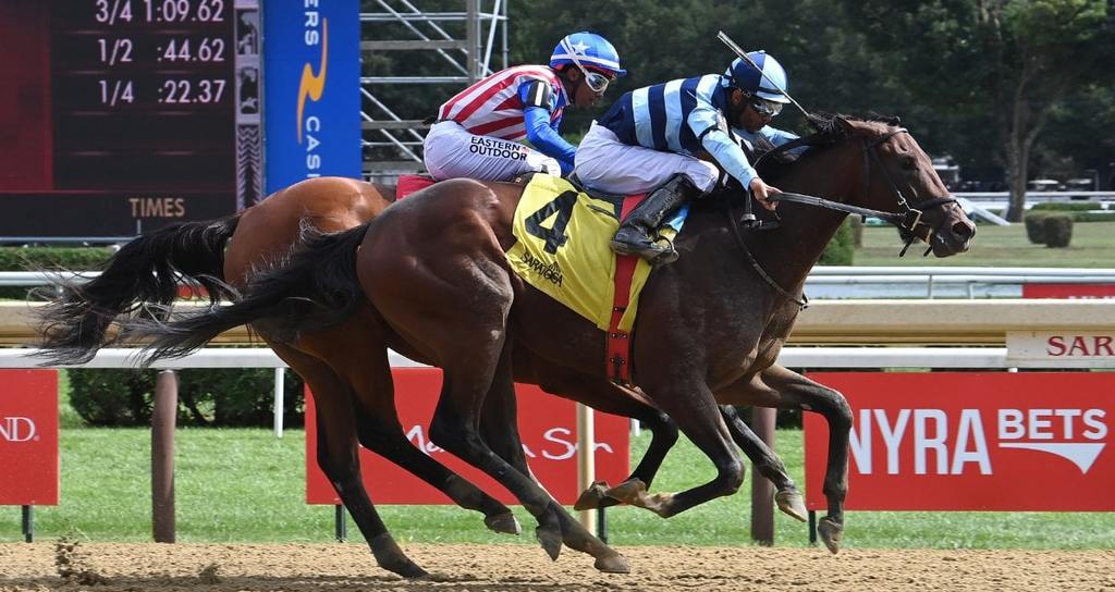 Trained by five-time Eclipse Award-winner Chad Brown, the Gun Runner chestnut tracked the pace from a close-up fourth position, had the jump on Renegade late, but that rival rallied up the inside to cross the wire a head in front and was subsequently disqualified following a stewards’ inquiry concerning the final sixteenth.
