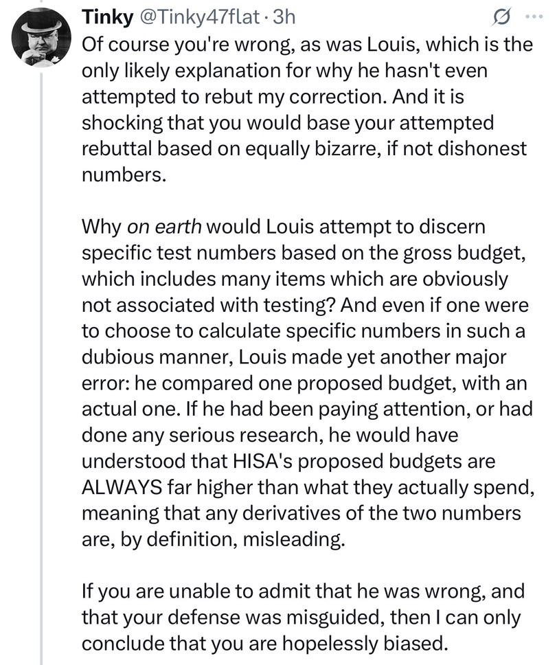 In the wake of Louis Masry (Westlake Stable) spotlighting the glaring red flags in HISA’s 2026 budget, a familiar defender has emerged. Their argument is a beginners class in pedantry: they point to a single $1 million decrease in “Lab Testing” fees as proof of fiscal responsibility. They accuse critics of being “dishonest” for looking at the gross budget instead of their cherry-picked line items.
