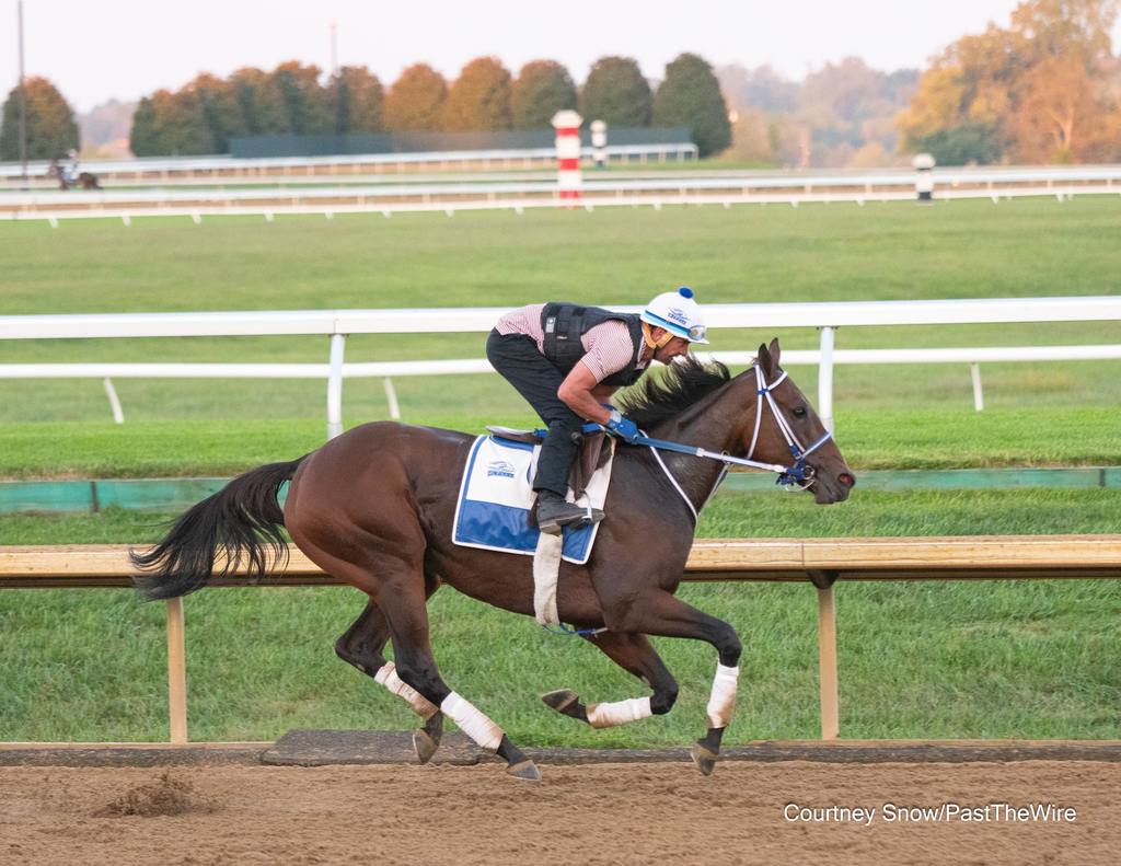 Thorpedo Anna prepping for her final start at Keeneland. (Courtney Snow/Past The Wire)