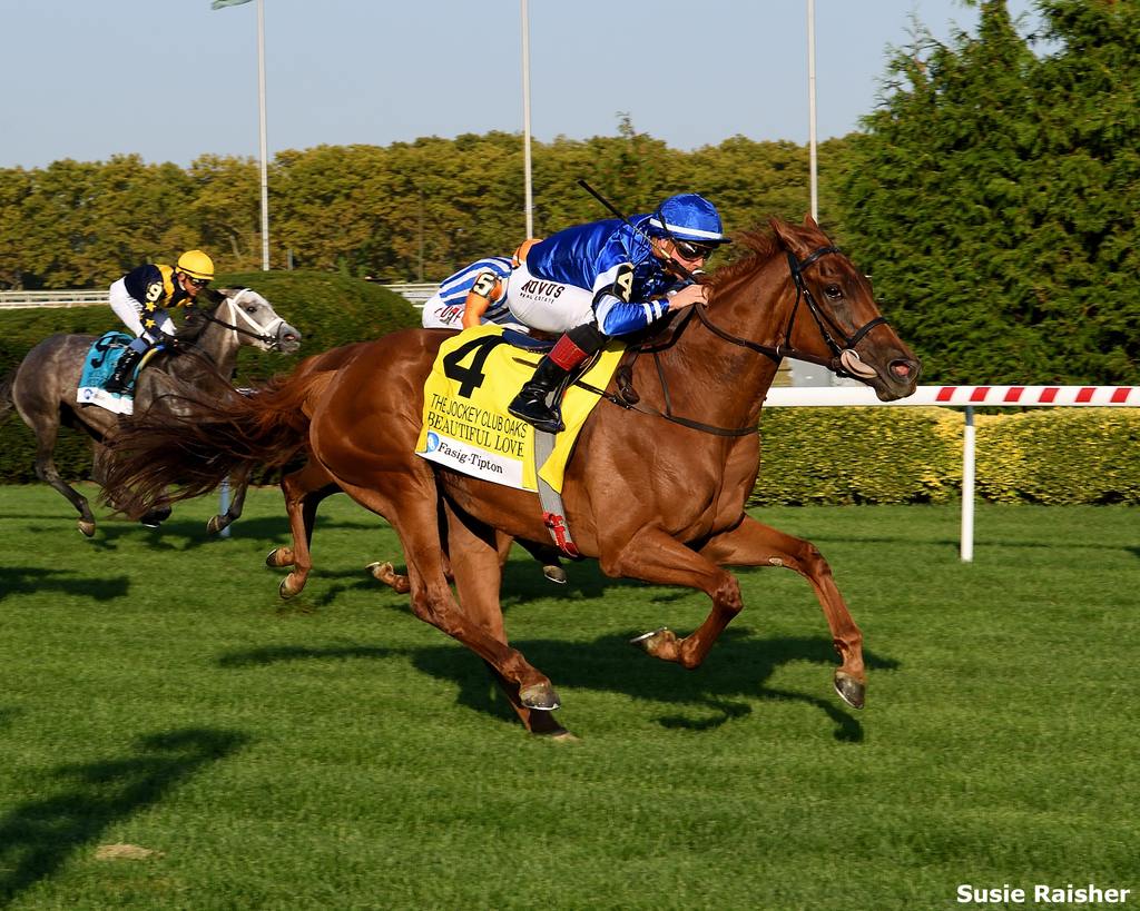 Beautiful Love, Winner of the 2024 Jockey Club Oaks, Credit Susie Raisher