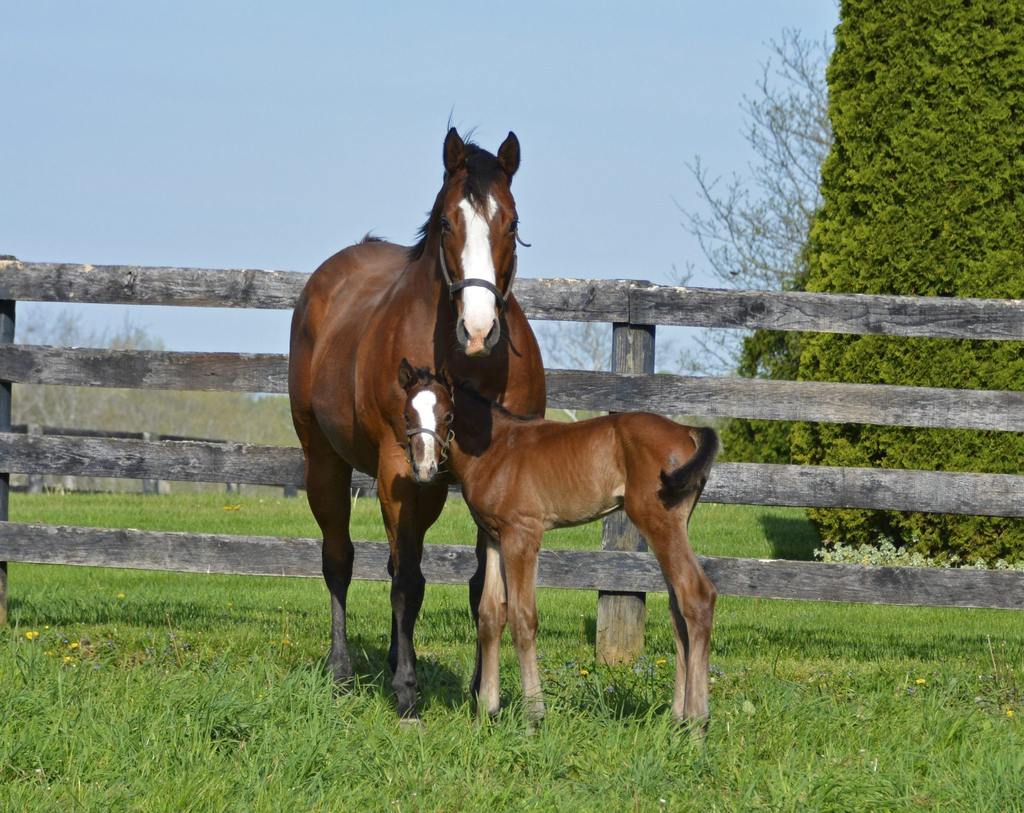 Covfefe and her 2022 Tapit colt. (Courtesy of LNJFoxwoods)