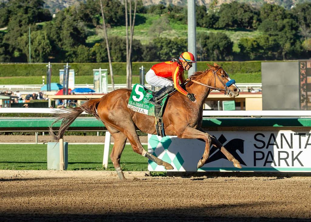 ARCADIA, CA —Usha uncorked a powerful performance under Juan Hernandez to win her Grade I debut in Sunday’s $300,000 La Brea Stakes for 3-year-old fillies going seven furlongs on opening day at Santa Anita Park.