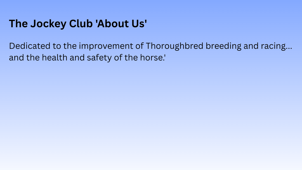 Because what they do is where the truth lives. Recently, on a Past the Wire show, I put up a graphic pulled directly from the “About Us” page of The Jockey Club. Not interpretation. Not paraphrasing. Their own words.